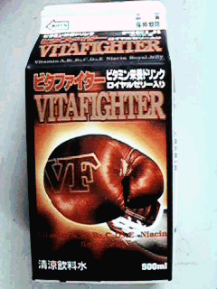 そして究極のジャンクドリンクが登場した「ビタファイター」である。もう,パッケージからしてすごい。このデザインから考えると,スタミナドリンクのようだが,下にはハッキリと清涼飲料水(清涼感のないものまで清涼というのは,やめませんかねぇ)。天下の明治乳業が「ビタミン栄養ドリンク ロイヤルゼリー入り」である。