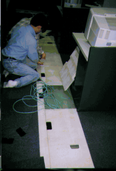 床をはがして,ケーブルを埋めてゆく。この作業は思ったよりコツを要する。これで彼等はまかり間違ってNTTに就職しても安心だ。