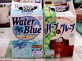 コップに注いだ瞬間,我々は驚喜した(これみんな女生徒2人が買ってきて,女性の助手と私でごちそうになっているのであった。いまどき缶ジュース回しのみしたり,パックを注ぎ合う光景も珍しいと思う)。「ブルー」の勝ちだ。
